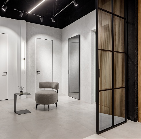 «Наши концепции в дизайне всегда опираются на минимализм и рациональность. Чистые линии и лаконичные формы всегда выстраивают строгую логику в оформлении интерьеров. В своих проектах мы почти всегда используем двери со скрытым монтажом, в сочетании с шпонированными панелями, с зеркалами или просто под покраску они помогают нам организовать ту самую притягательность минимализма.»Видео о скрытых дверях
