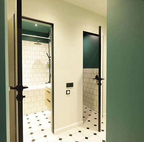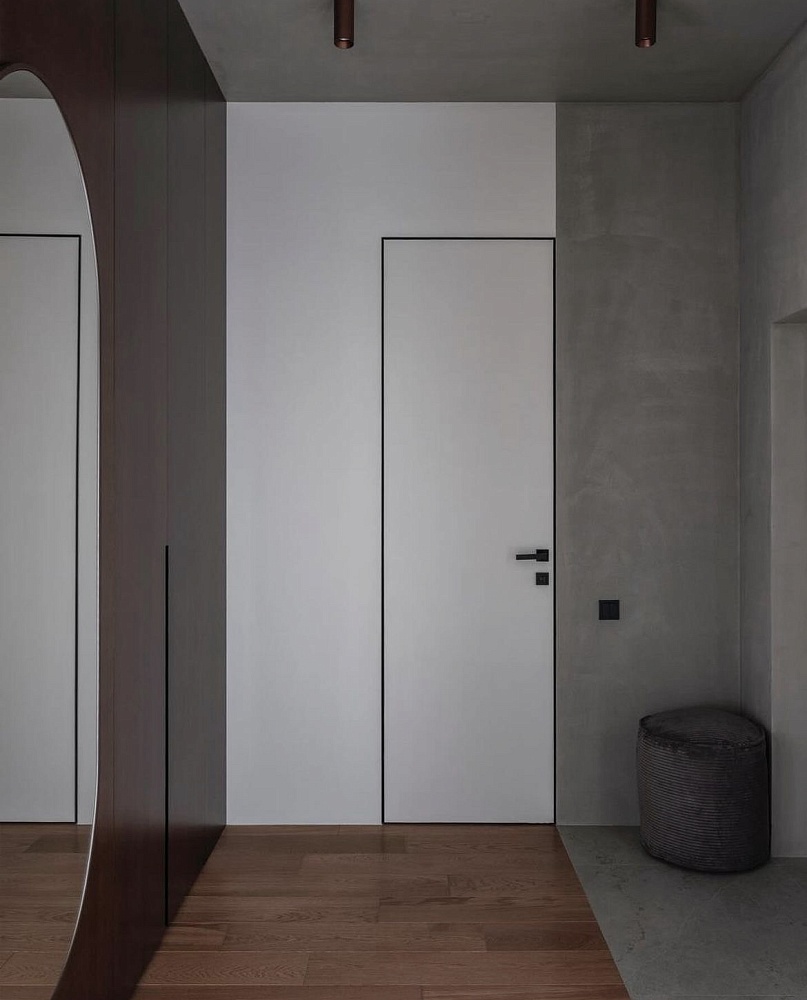 - когда в проекте много дверей, полезно часть из них сделать "невидимыми" - это делает интерьер визуально более "легким", чистым, лаконичным